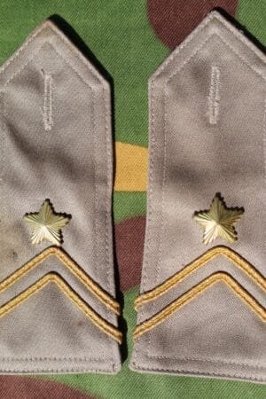 YU607D.Shoulder boards for Yugoslav Army First Sergeant.Gray with one gold stripe and four gold stars. Slip on.