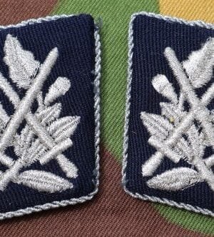 YU597A.Yugoslav Army Colonel collar tabs for regular uniform of Administrative officers of Military Music.Navy blue with silver embroidery.