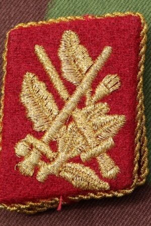 YU597D.Yugoslav Army Colonel collar tabs for regular uniform. Military Music of Guard troops.Red with gold embroidery. Unissued pair