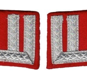 RSE366.Cossack officer collar tabs. Crossed lances on red with aluminum tress border