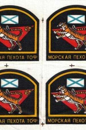 R747.Russian uncut sheet of four printed patches for the 55th naval infantry division of the Pacific Fleet. 1990's