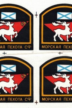 R750.Russian uncut sheet of four printed patches for the 175th naval infantry brigade of the Northern Fleet. 1990's.