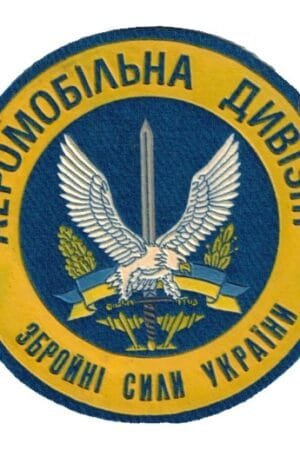 UK370.Circular sleeve patch for the 1st Airmobile division of the armed forces of Ukraine on blue cloth. 1996