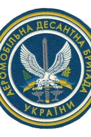 UK369A.Circular sleeve patch for the 1st Airmobile landing brigade. "Airmobile descent brigade of Ukraine" on blue cloth.