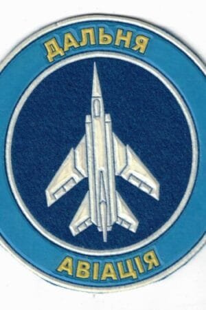 UK424.Sleeve patch "Long range aviation". White bomber on blue.