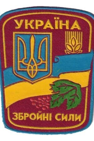 UK87.Sleeve patch for Ukrainian army personal. On red cloth. "Armed forces of Ukraine".