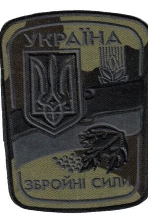 UK87C.Sleeve patch for Ukrainian army personal. On camouflage cloth. "Armed forces of Ukraine".