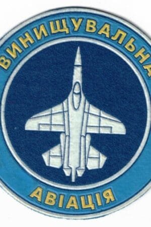 UKR425.Sleeve patch "Destructive Aviation". White fighter aircraft on blue.