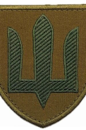 UKW1.Sleeve patch of Armed Forces of Ukraine.Ground Forces. Olive Trident on Coyote. Velcro backing.