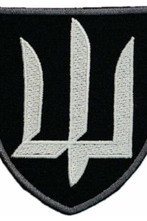 UKW10.Sleeve patch of Armed Forces of Ukraine. GRU Main Directorate of Intelligence. White Trident on Black. Velcro backing.