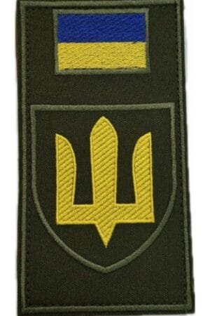 UKW12.Sleeve patch of Armed Forces of Ukraine with Flag. Yellow Trident on Olive. Velcro backing.