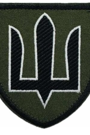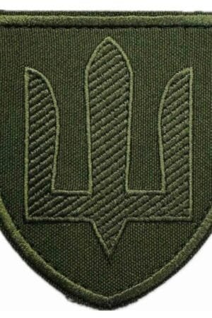 UKW2.Sleeve patch of Armed Forces of Ukraine.Ground Forces. Green Trident on Olive. Velcro backing