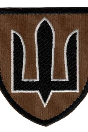 UKW17.Sleeve patch of Armed Forces of Ukraine. General Staff. Black Trident with White outline on Coyote with Black edge. Velcro backing.