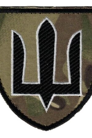 UKW18.Sleeve patch of Armed Forces of Ukraine. General Staff. Black Trident with White outline on Multicam with Black edge. Velcro backing.