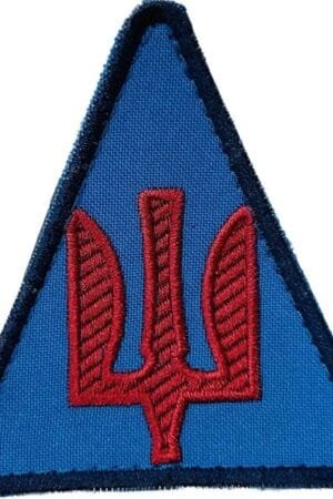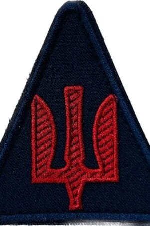 UKW159.Ukrainian Air Force Anti-Aircraft Missile Forces sleeve patch. Red Trident on Dark Blue with Blue border.
