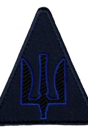 UKW163.Ukrainian Air Force Radio, Engineering Troops sleeve patch. Black Trident on Dark Blue with Blue border.