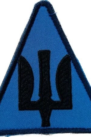 UKW165.Ukrainian Air Force Anti-Aircraft Missile Forces sleeve patch. Black Trident on Blue with Blue border