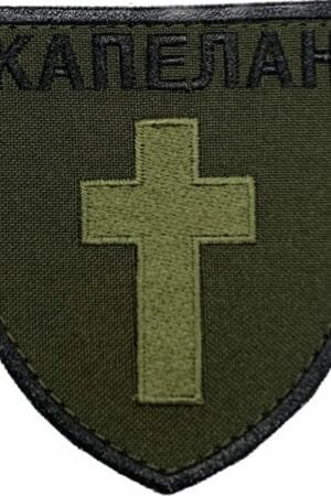 UKW182.Sleeve patch of Armed Forces of Ukraine. Chaplain. Olive Cross on Olive. Velcro backing.