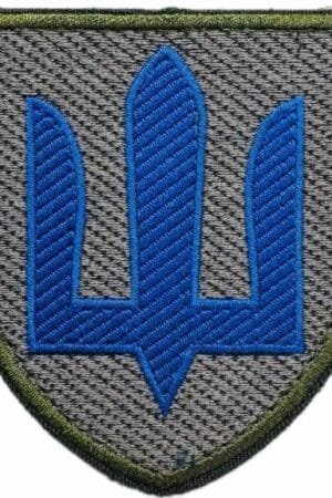 UKW184.Ukraine Trident sleeve patch. Mountain Infantry. Blue Trident on Gray. Velcro backing.