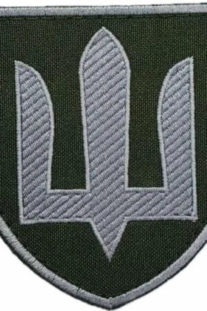UKW189.Ukraine Trident sleeve patch. Military Law Enforcement. Gray Trident on Olive. Velcro backing.