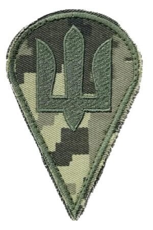 UKW35.Ukrainian Airborne Assault Troops Trident sleeve patch OD Trident on camouflage. Velcro backing.