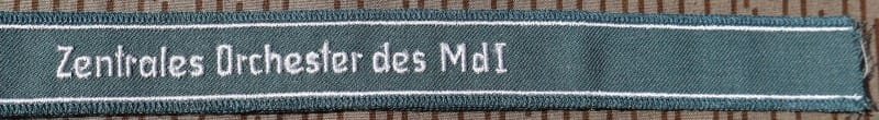 EGCT18.East German cuff title “Zentrales Orchester des MDI” White on green.