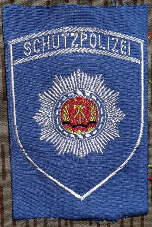 EGP6.“Schutzpolizei” police sleeve patch.Woven for shirts. Dark Blue.