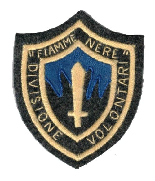 RIT3.Reproduction Italian WW2 sleeve patch for the “Fiamme Nere Division Volontari”.