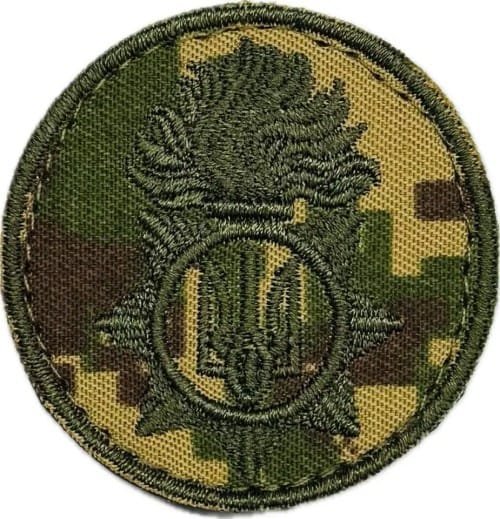 UKHC2.Ukrainian National Guard cap badge with velcro backing on Predator camouflage. 5cm diameter.