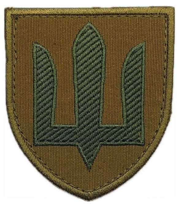 UKW1.Sleeve patch of Armed Forces of Ukraine.Ground Forces. Olive Trident on Coyote. Velcro backing.