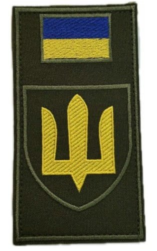 UKW12.Sleeve patch of Armed Forces of Ukraine with Flag. Yellow Trident on Olive. Velcro backing.