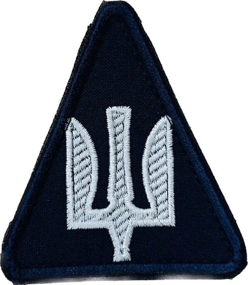 UKW150.Ukrainian Air Force sleeve patch for Air Aviation. White Trident on Navy Blue with Blue border.