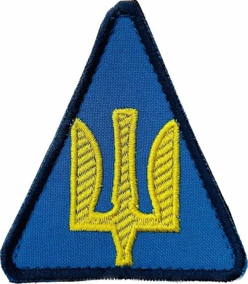 UKW153.Ukrainian Air Force sleeve patch. Yellow Trident on Blue with Blue border.