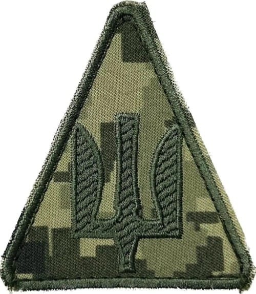 UKW157.Ukrainian Air Force sleeve patch. Olive Trident on Pixel camouflage with Olive border.