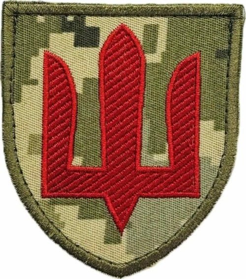 UKW194.Ukraine Trident sleeve patch. Anti-Aircraft Missile Troops. Red Trident on Pixel camouflage. Velcro backing.