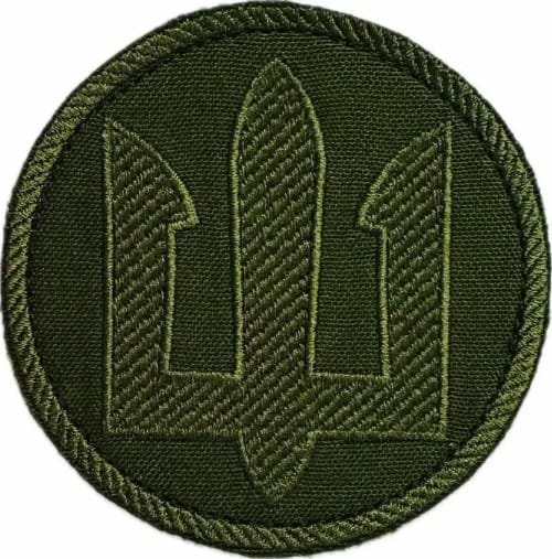 UKW195.Ukrainian Marines Trident sleeve patch. Olive Trident on Olive. With hook fabric.
