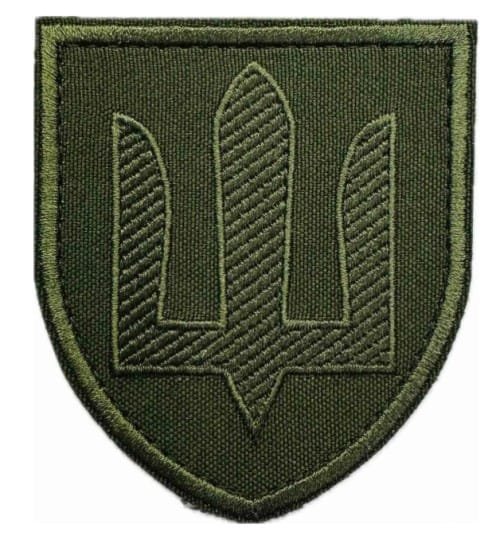 UKW2.Sleeve patch of Armed Forces of Ukraine.Ground Forces. Green Trident on Olive. Velcro backing