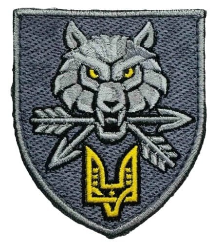 UKW29.Ukrainian Special Operations Forces sleeve patch. Wolf on Grey. Velcro backing.