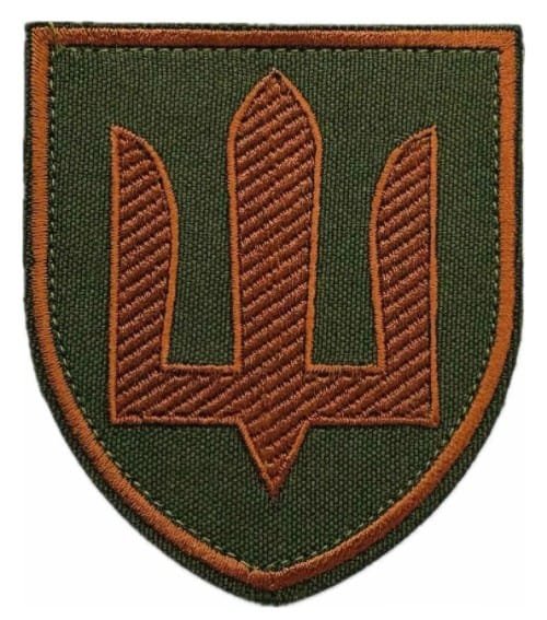 UKW3.Sleeve patch of Armed Forces of Ukraine. Medical Service. Brown Trident on Olive. Velcro backing.
