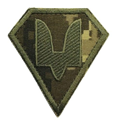 UKW33.Ukrainian Special Operations Forces Trident sleeve patch OD Trident on Pixel camouflage. Velcro backing.