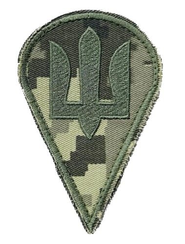 UKW35.Ukrainian Airborne Assault Troops Trident sleeve patch OD Trident on camouflage. Velcro backing.