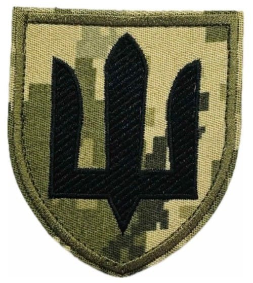 UKW7.Sleeve patch of Armed Forces of Ukraine. Engineers, Radio and Signals Troops. Black Trident on Camouflage. Velcro backing