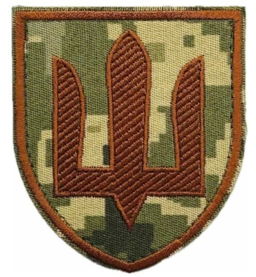 UKW8.Sleeve patch of Armed Forces of Ukraine. Medical Service. Brown Trident on Camouflage. Velcro backing.