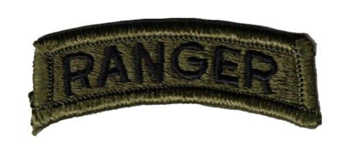 US22.Vintage U.S. RANGER Sleeve Arc. Black on O.D.. Sew on.