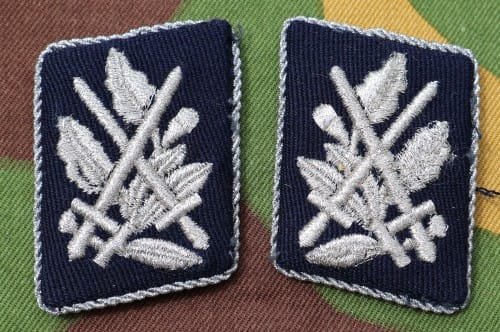 YU597A.Yugoslav Army Colonel collar tabs for regular uniform of Administrative officers of Military Music.Navy blue with silver embroidery.