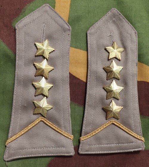 YU607D.Shoulder boards for Yugoslav Army First Sergeant.Gray with one gold stripe and four gold stars. Slip on.
